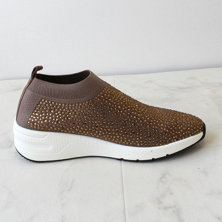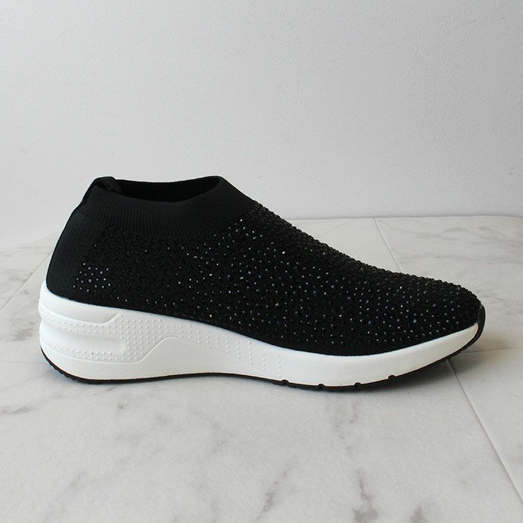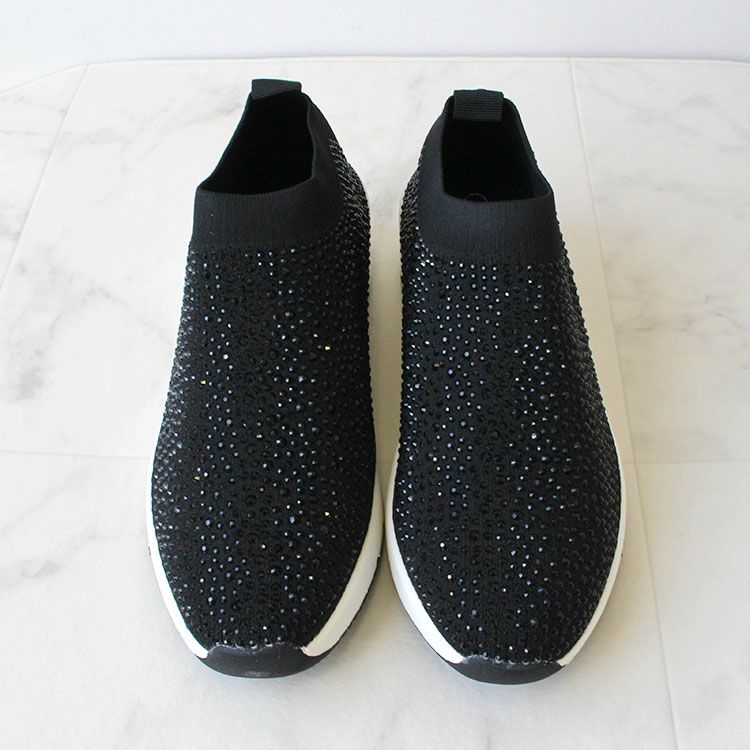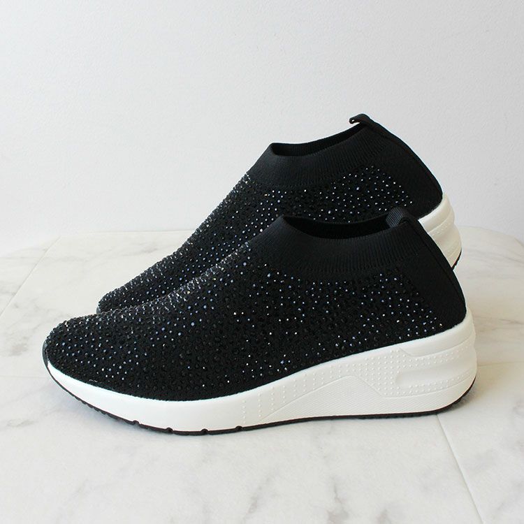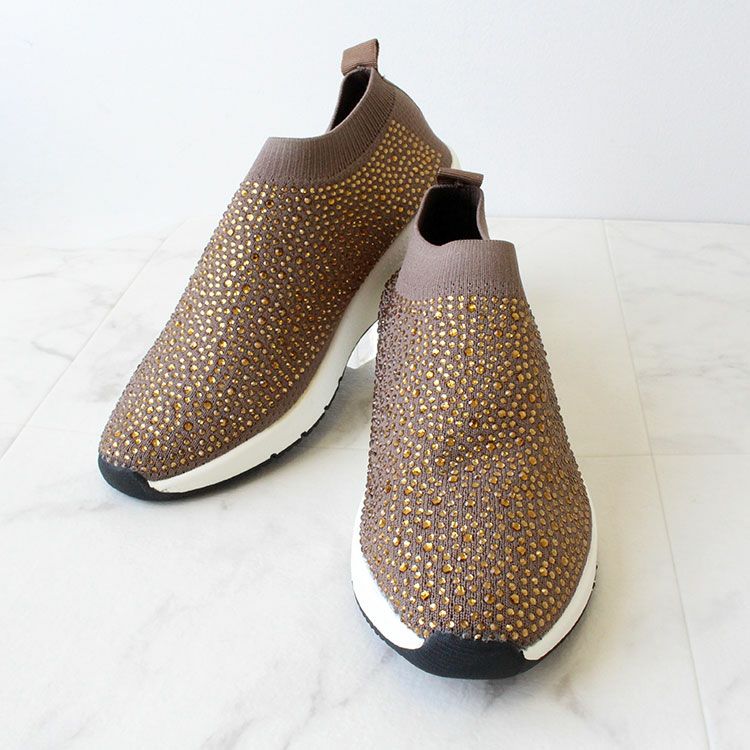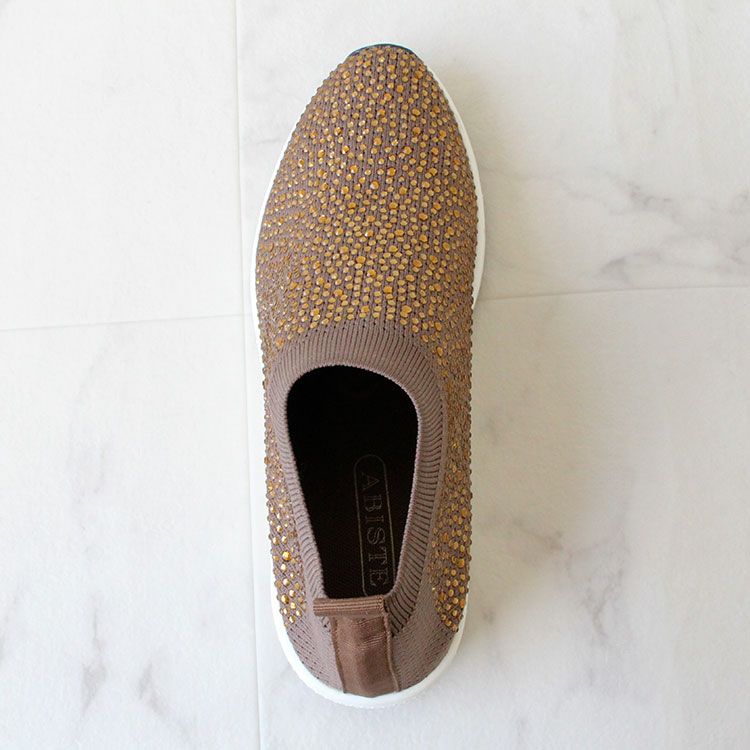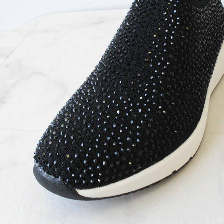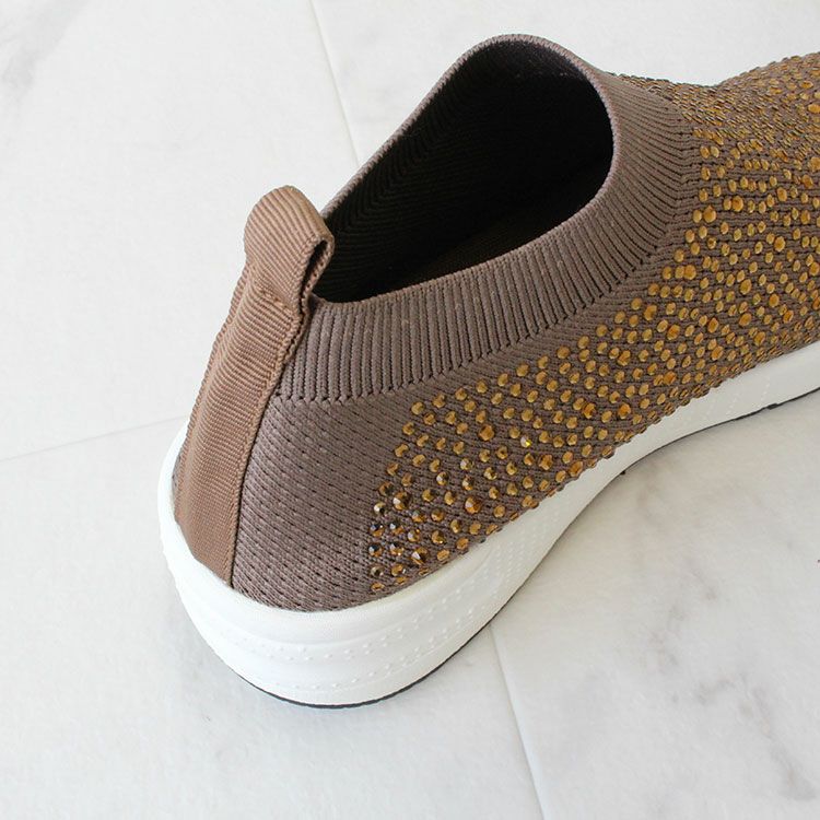 甲全体にストーンがあしらわれたデザインとシンプルなシェイプが足元を華やかかつすっきりと見せてくれるニットシューズ。柔らかく足にフィットするため快適な履き心地が特徴です。アッパー全体がニット地なので通気性が良く、夏の暑さや冬の暖房と一年中汗をかきがちな足を心地よく守ります。