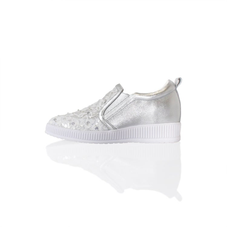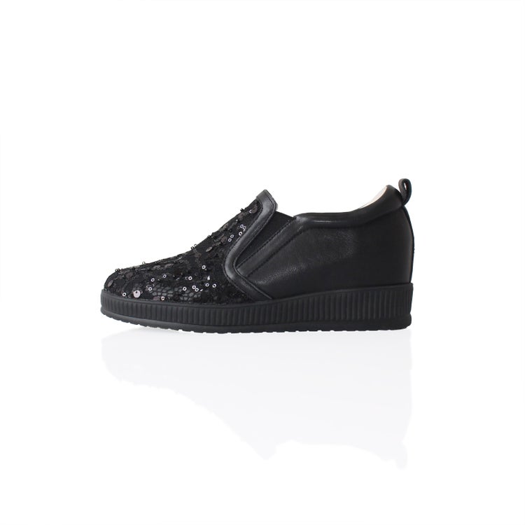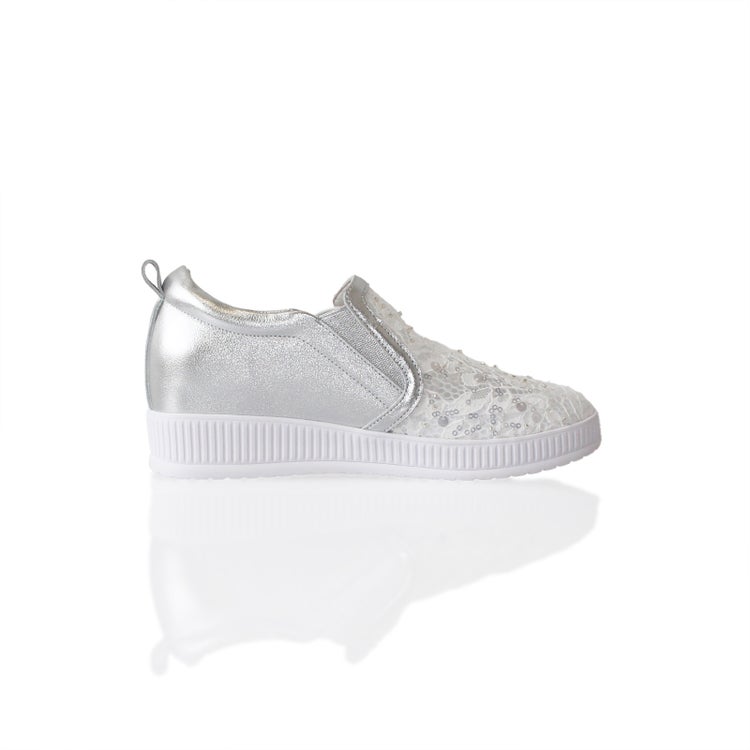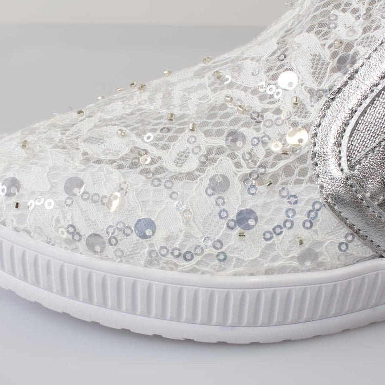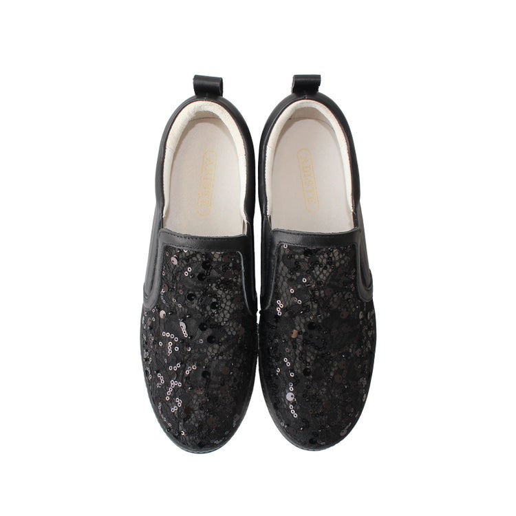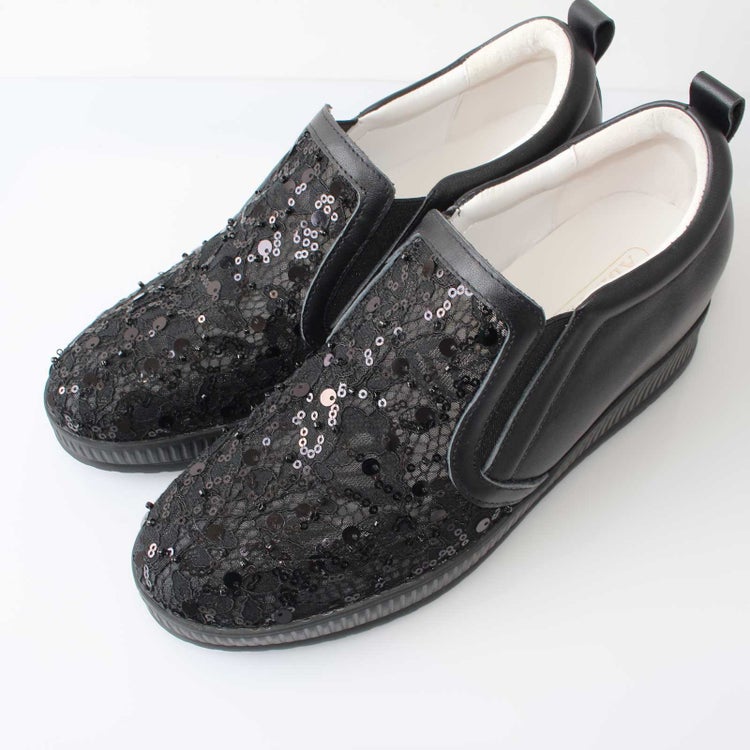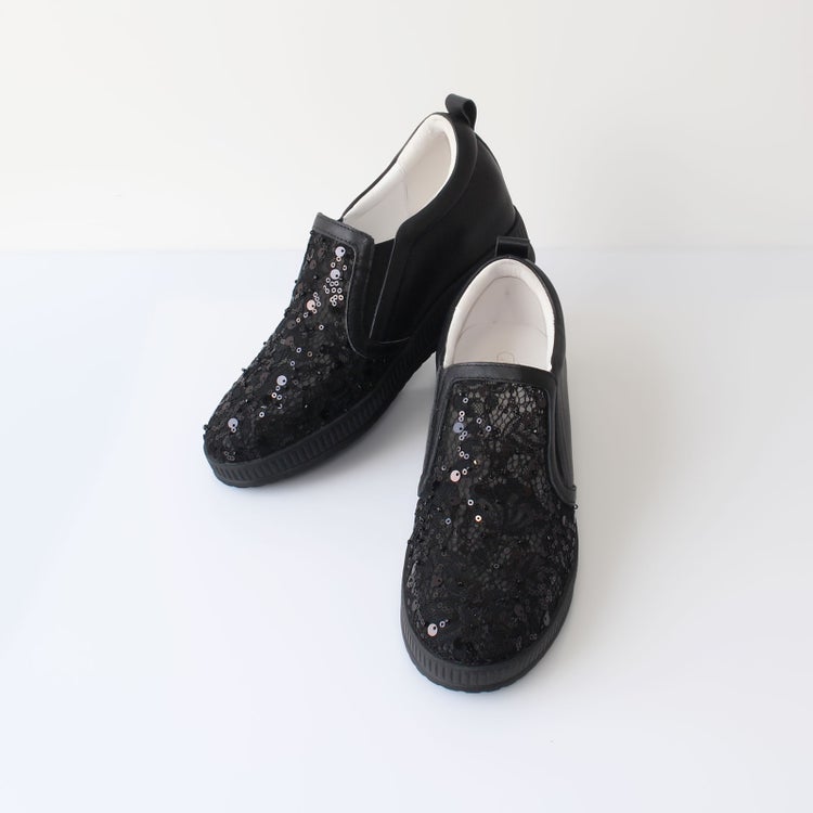透け感のあるチュールレースが軽やかなレザースリッポン。アッパーのレザー部分は牛革、インソールには豚革を使用し、使うほどに肌になじむ履き心地。通気性もよく、インソールも厚みのあるクッション素材を内蔵しているためたくさん歩いても快適です。程よいボリュームの厚底で、スタイルアップと歩きやすさを叶えます。