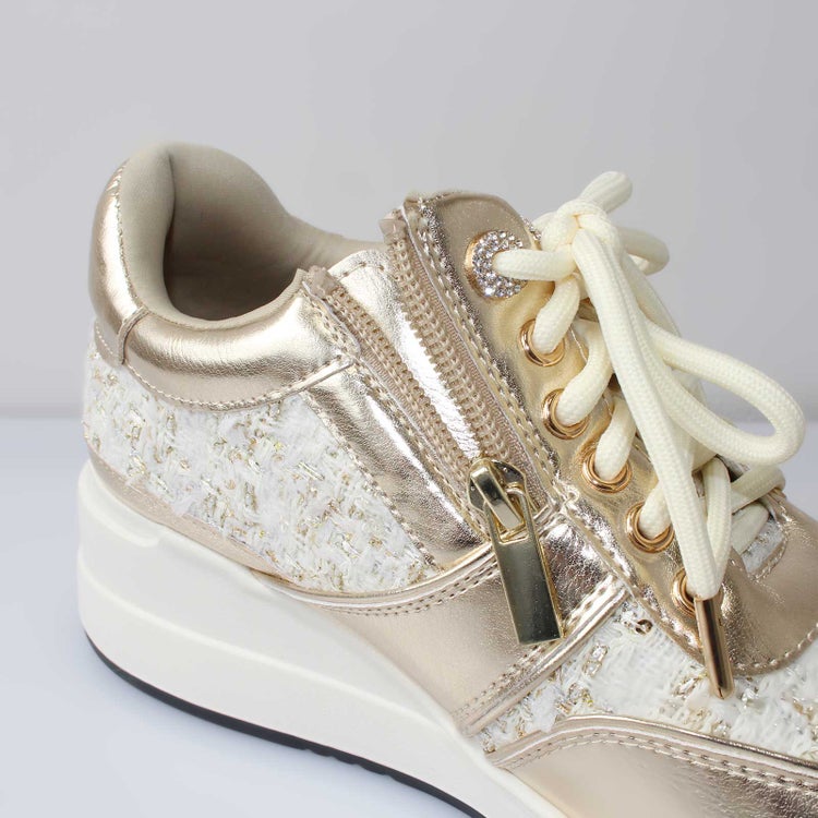 《軽量・もちもちインソール》ツイードヒールアップスニーカー