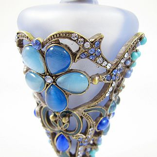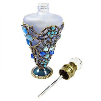 ブルーのすりガラスのパフュームボトル。実際に香水を入れるのはもちろん、お部屋を飾るアイテムとして使っても気分が上がります。
