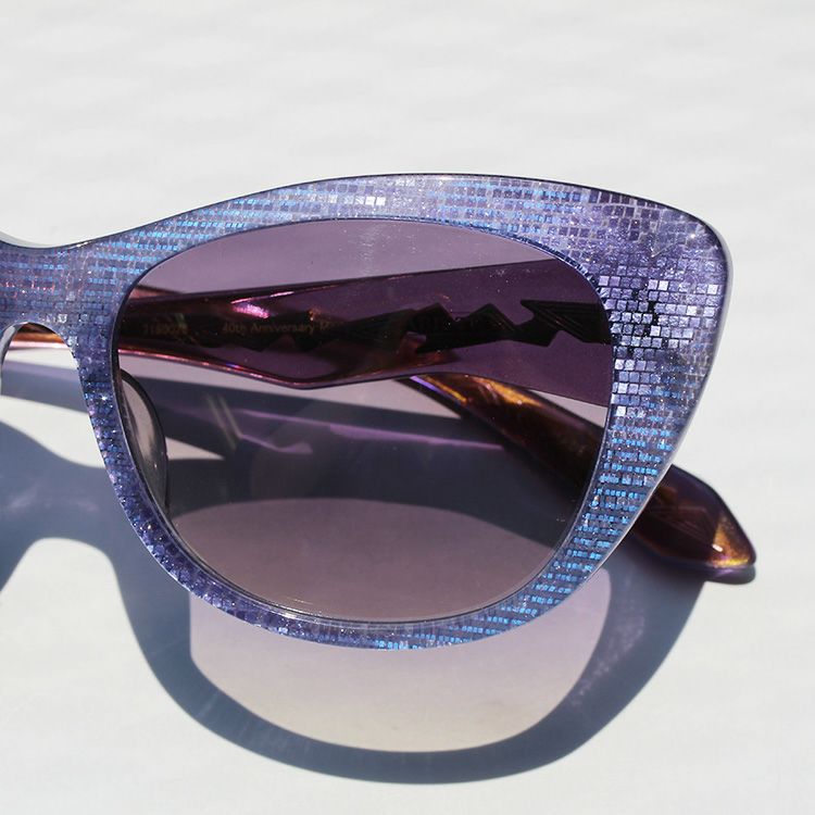 めがねの街、福井県鯖江でデザイン・制作したサングラス。女性らしいフォルムのフレームには微細なラメ感があり、さりげなくも華やか。注目すべきはテンプルの芯の形。透けて見える特徴的なデザインは横顔のアクセントになり、細部までこだわる大人のおしゃれを感じさせます。