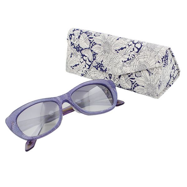 ケースはリバティジャパン社とのオフィシャルコラボにより実現した、リバティアートファブリックを使用した折り畳みケース。しっかりとサングラスを保護しつつ、サングラス着用時にはコンパクトにしまえて便利です。