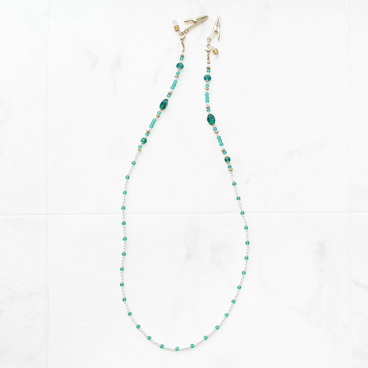 サングラス・リーディンググラスやマスクは、室内外や飲食など付け外しが多いもの。少しだけ外したい時にコードがあると便利です。また、顔まわりが華やぐアクセサリーとしても◎。