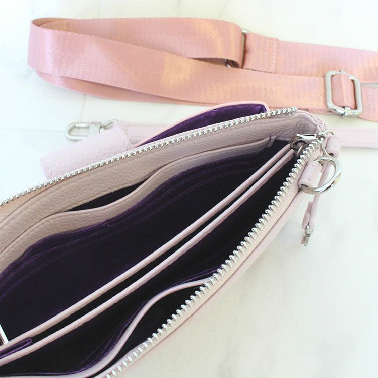 着脱可能な長いベルトと短いストラップの2本付き。ショルダー・斜めがけ・お財布ポシェットにしたり、ポーチやウォレットとしても使えてマルチに活躍します。出し入れしやすい横型なので、ワンマイルバッグ、デート、ちょっとしたお出かけや旅行先での移動に。通勤やオフィス内でICカードやその他事務用品入れとしても重宝します。