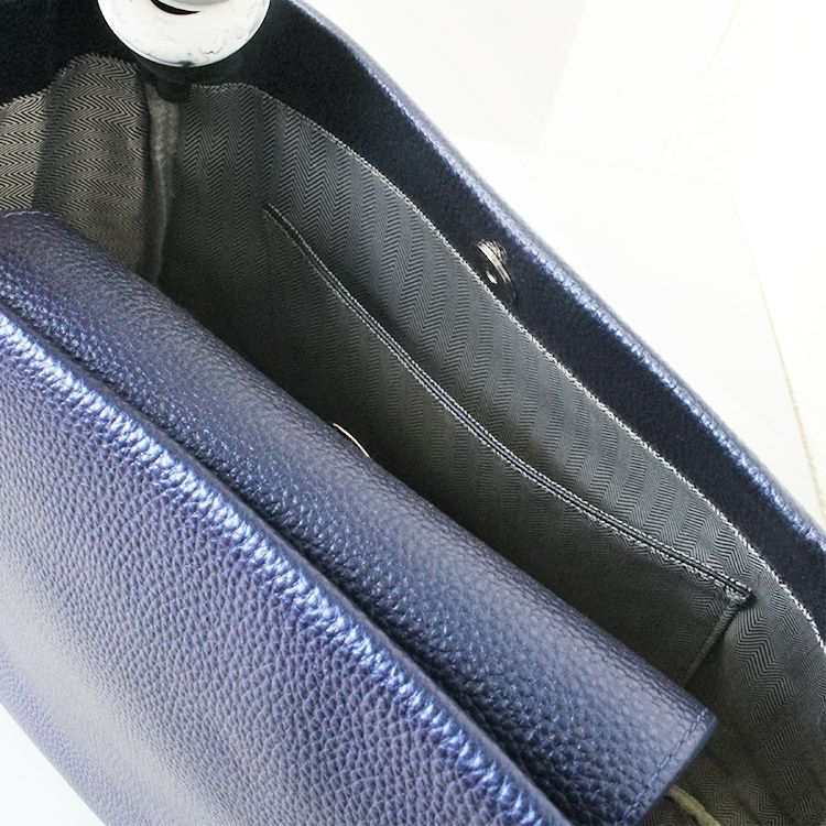 ZSiSKA (シスカ)製のパーツをハンドルに通したアビステオリジナルバッグ。メタリックなながらも程よい落ち着きがあるカラーで、品良くお使いいただけます。マチも広くA4サイズも入る大きさなので、収納力もたっぷり。