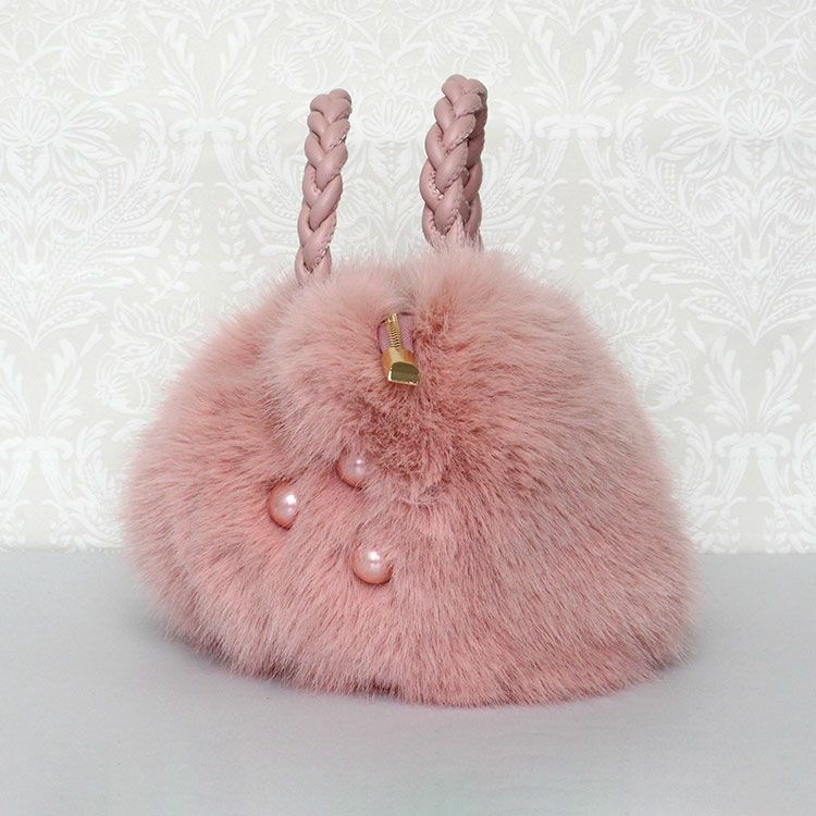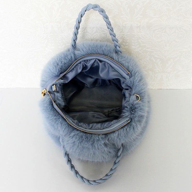 大きなパールがキュートな大人かわいいふわふわのエコファーバッグ。取り外し可能なショルダーストラップ付きなので肩掛けや斜め掛けでご利用いただけます。ハンドルはPUを編み込んだかわいいデザイン。開閉部分はファスナーになっているので、人混みや移動中でも安心です。内側にはファスナー付きのポケットが付いていて、鍵など大切な小物をしっかり収納可能。しっかりとマチがあり、お荷物を十分に収納できるゆったりサイズです。