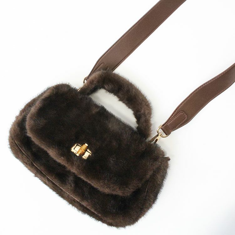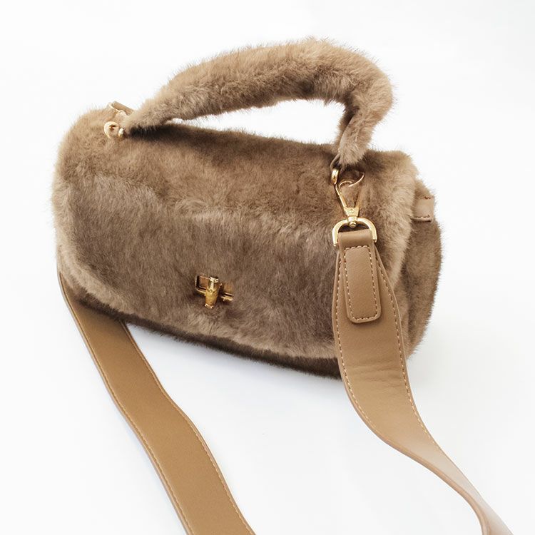 ショルダーベルト付きフラッフィーハンドバッグ