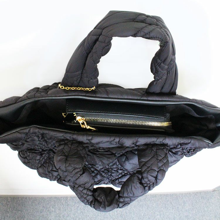 イタリア・フィレンツェに拠点を構える、兄弟からなるブランド Alex Max のバッグ。ダイヤの内側に、横向きにハートを配したキルティング生地の表面はさらさらとした質感。大人が使いやすい品のあるカラーリングに、ゴールドメタルのブランドチャームがアクセント。レザーライクなショルダーベルトが付属しており、ショルダーバッグや斜めがけバッグとしても使えるマルチウェイ仕様です。