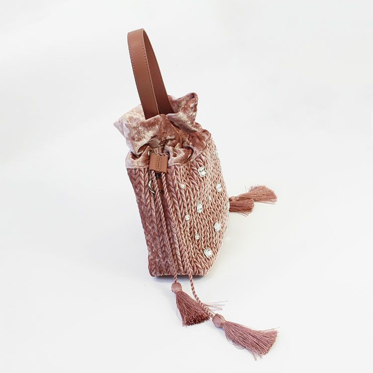 巾着型ベロアビジュー2wayバッグ