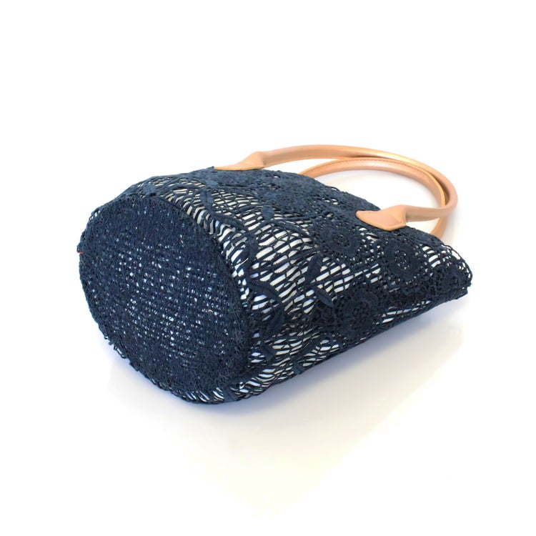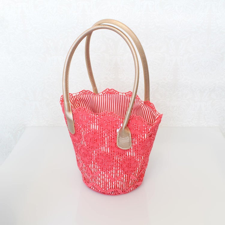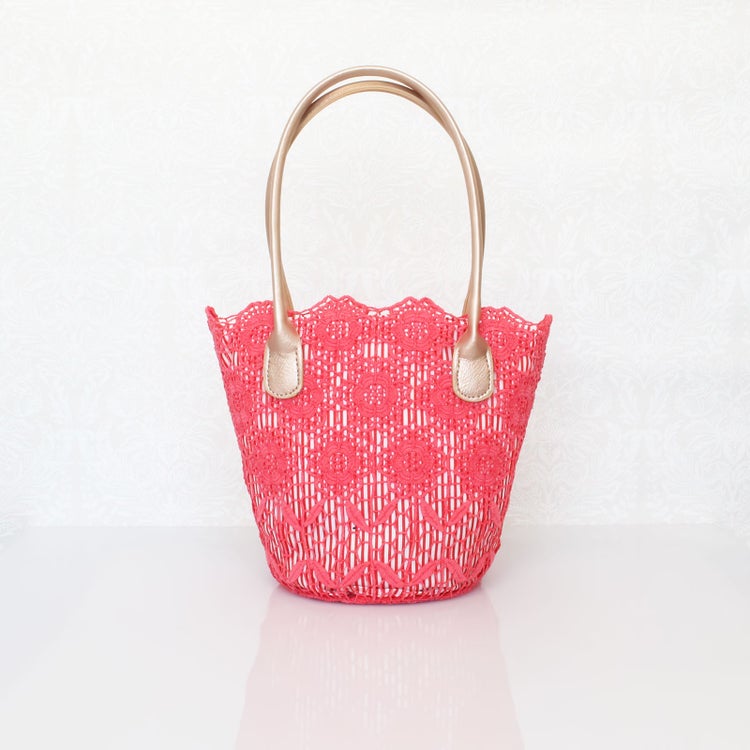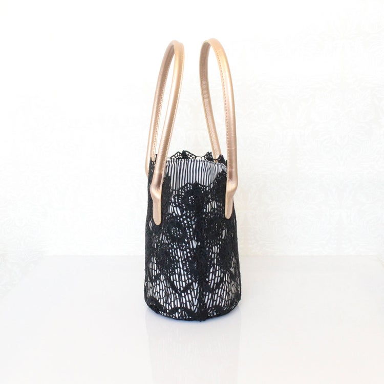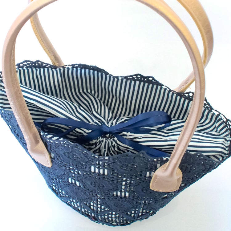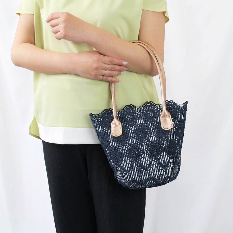 繊細に編み上げたレース生地に樹脂加工を施し、程よいハリ感を持たせたアビステオリジナルバケットトートバッグ。