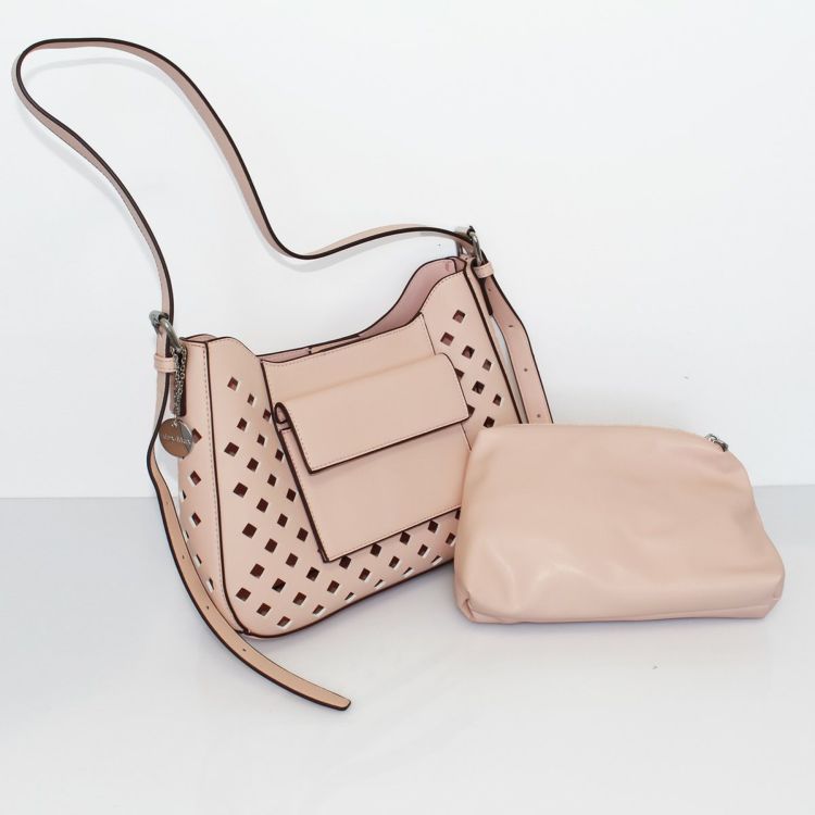 パンチングレザーダブルバックルショルダーバッグ
