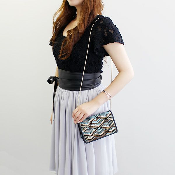 ショルダーパイソン柄ポーチ付き4way透かしバッグ(大)/-