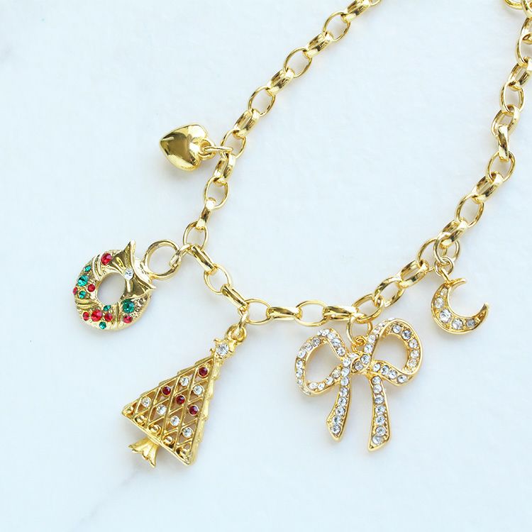 クリスマスモチーフやリボン、ハート、月など様々なチャームが揺れる、ホリデームードたっぷりのアイテム。