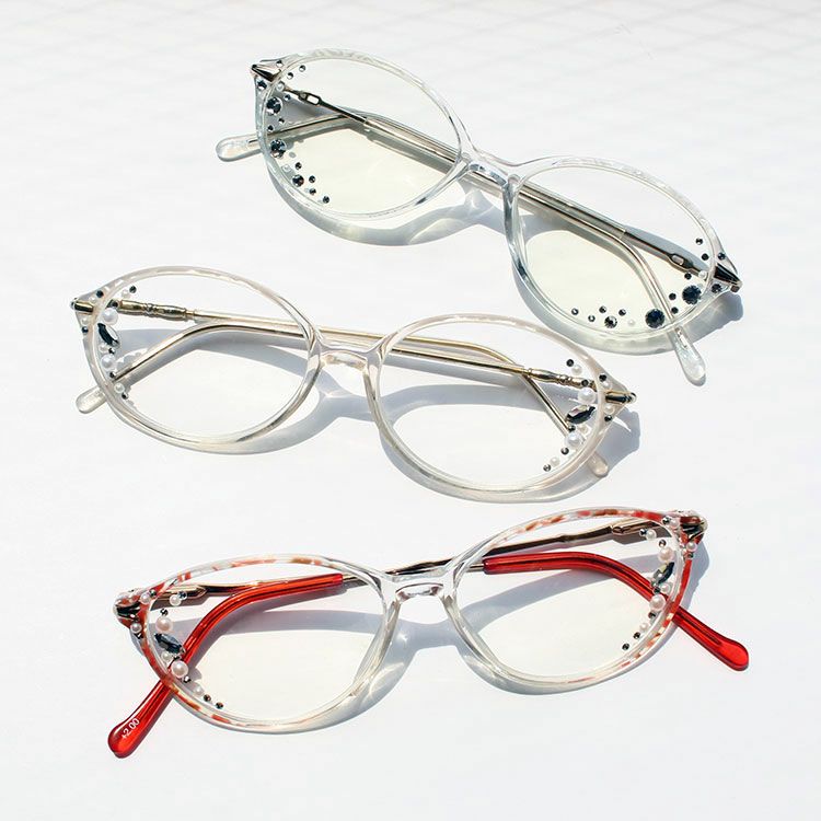 アセテート、プラスチックガラス、クリスタルガラス、プラスチックパール、合金