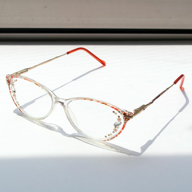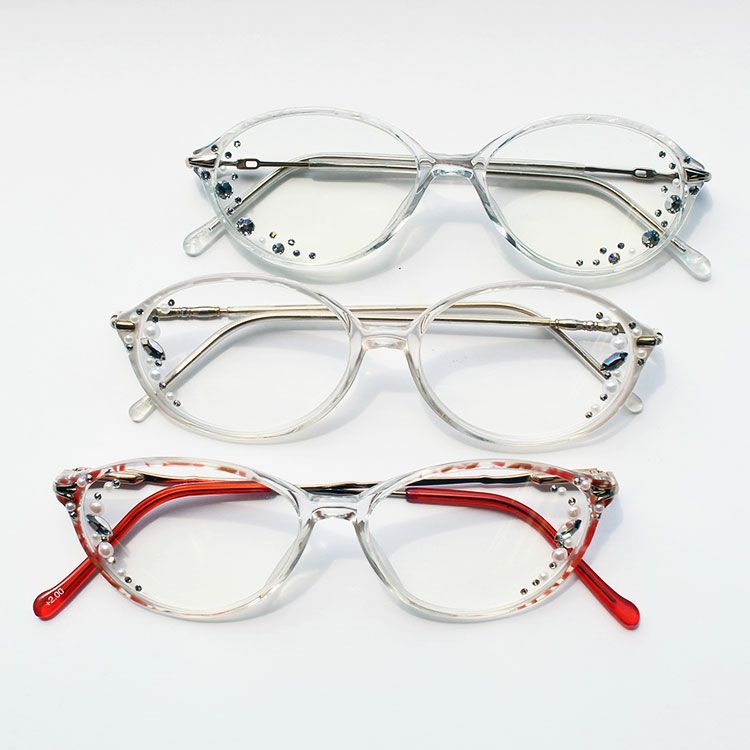 アセテート、プラスチックガラス、クリスタルガラス、プラスチックパール、合金