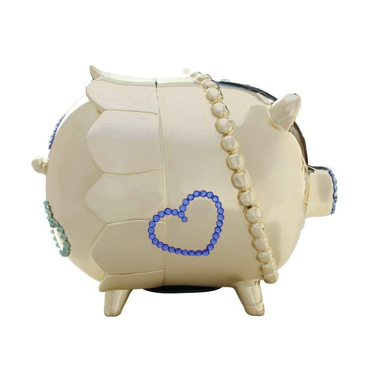 ぽってりリップに口元のほくろがなんともセクシー。耳と鼻はキラキラクリスタルでメイクアップ。おしゃれなブタちゃんは、トータルコーディネートもお得意でネックレス、リボン、スカートでおめかし。 ボディにはクリスタルでハートが描かれ、ラブリーさアップ。