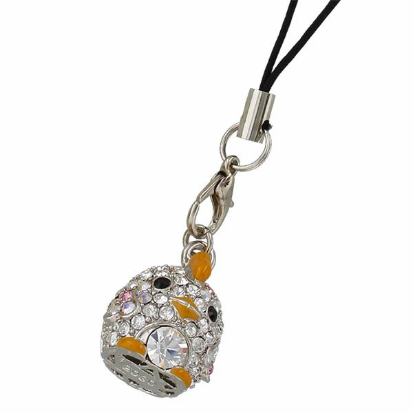 クリスタルガラスを抱えたころんとしたとりストラップ。エポキシで作られたとさかがとても愛らしくキュートです。中にスズが入っています。ギフトとしてもおすすめです。