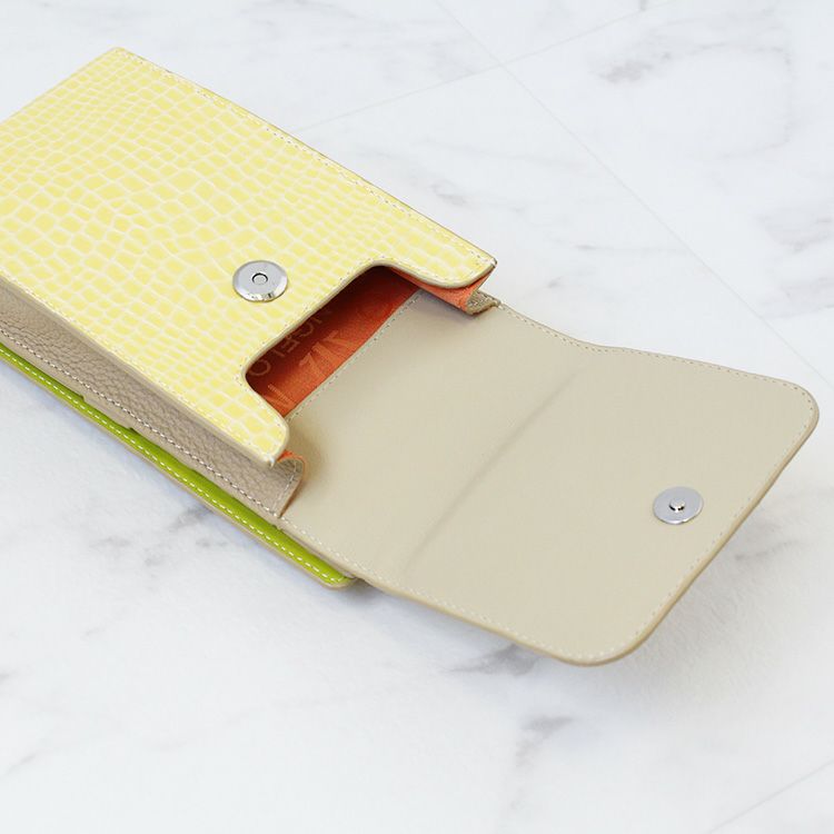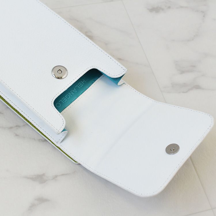 ショルダーストラップ付きのフォンポーチは、ミケランジェロならではの気分が上がるデザインと豊富な収納力が魅力。