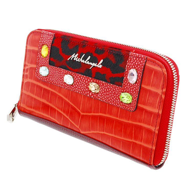 【MICHELANGELO】ヒョウ柄モチーフイタリアンレザー長財布/2129542-