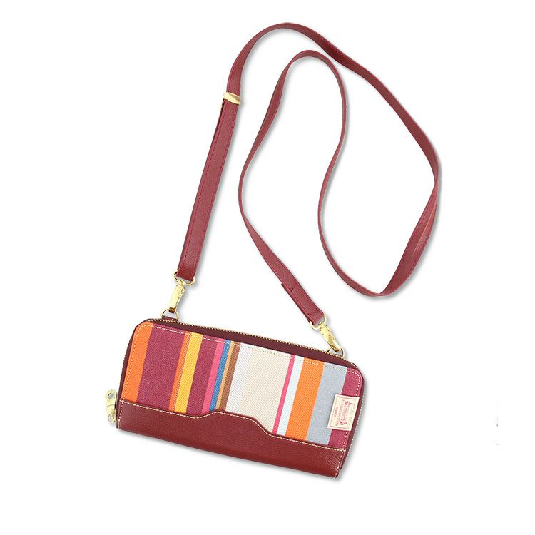 取り外し可能、フリーアジャスタブルで長さ調節も可能なショルダーストラップ付きな点もポイント。これ一つでお出かけしたり、荷物が多い時にも貴重品を常に身につけておけます。
