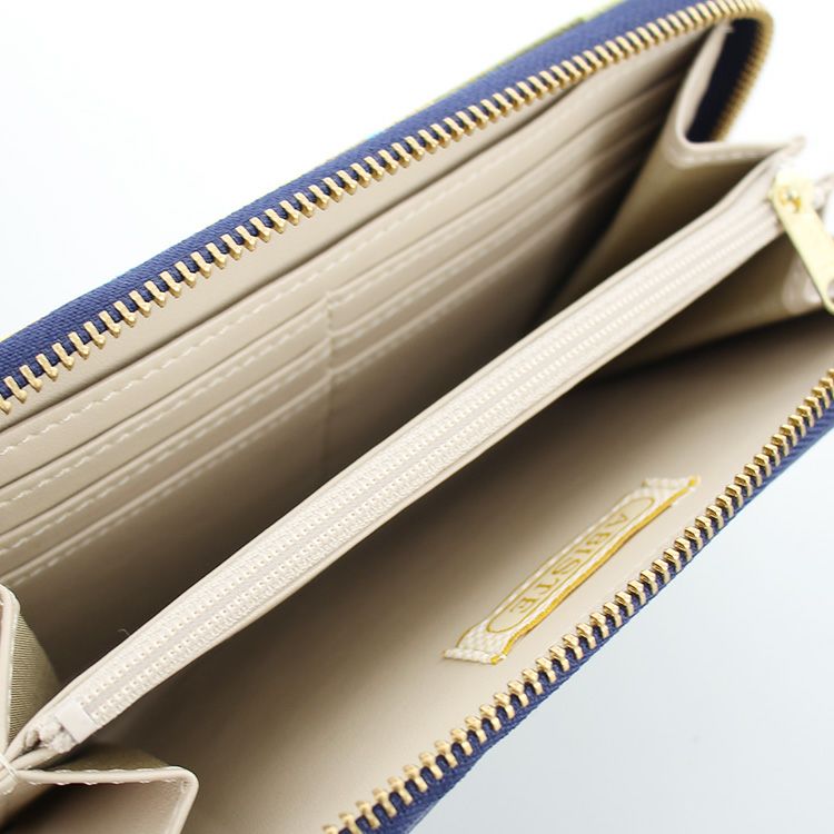 鮮やかなカラーが目を惹くフランス製の生地を使用した、日本製の長財布。軽いので、ストレスフリーで気軽に持ち歩けます。