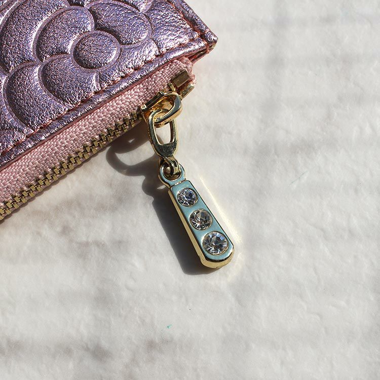 オリジナルデザインのミニ財布。カメリア(椿)モチーフを前面にあしらった光沢感のあるリュクスなデザインは、大人の上品さを醸し出します。コンパクトながらもカードや小銭がしっかり入るため、デイリー使いや旅行やちょっとしたお出かけなどのサブ財布としてもお使い頂けます。