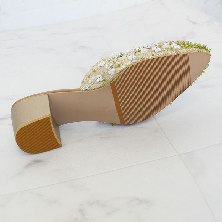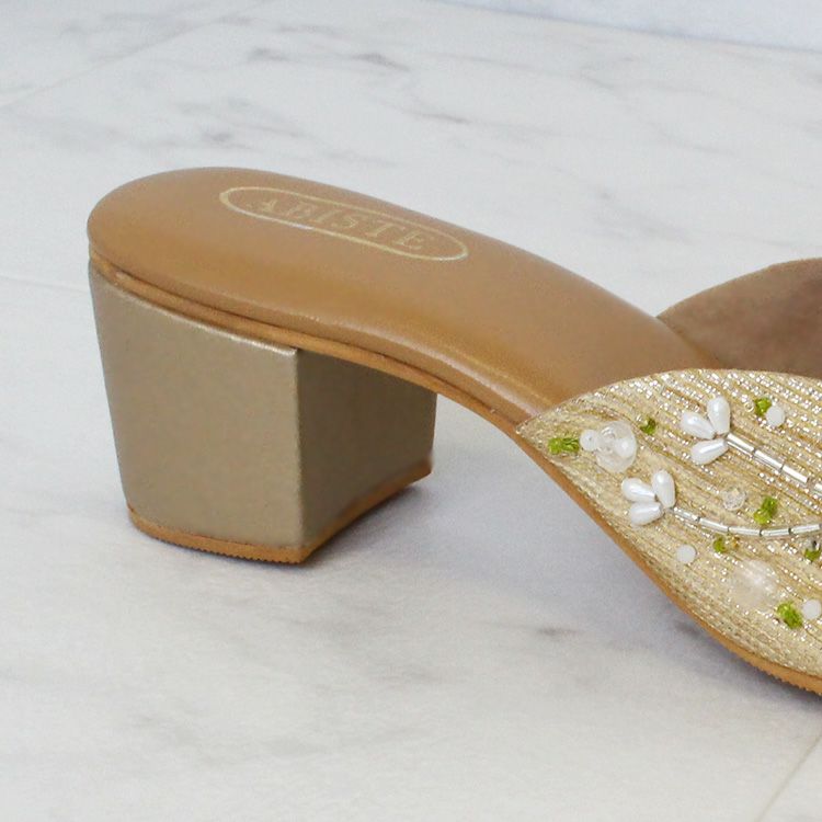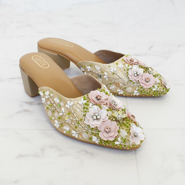 スパンコールやビーズで華やかな刺繍を施されたミュール。立体感のある刺繍は職人によって一つひとつ丁寧に作られています。