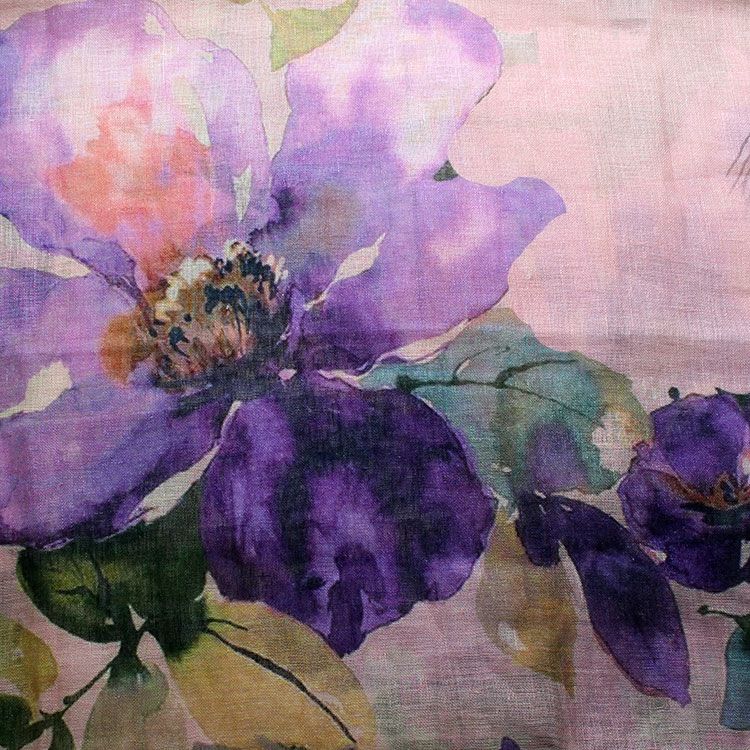 インド製リネン100%ボタニカルフラワープリントストール