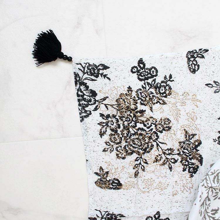 インド製リネン100%フラワープリントブラックストール