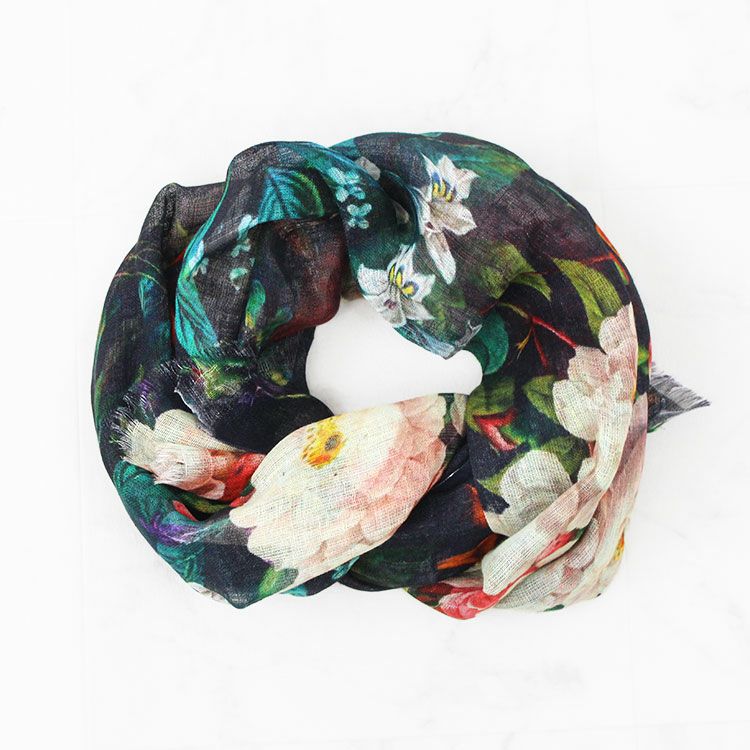 リネン100%フラワーモチーフプリントストール/2253009-