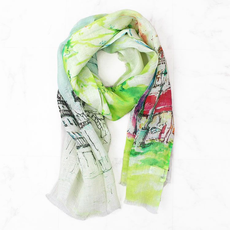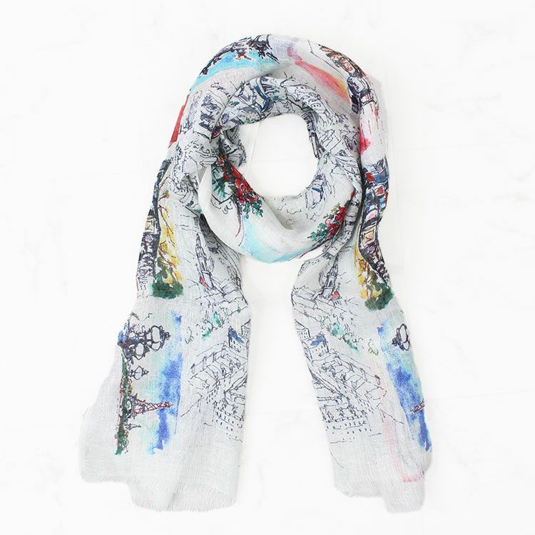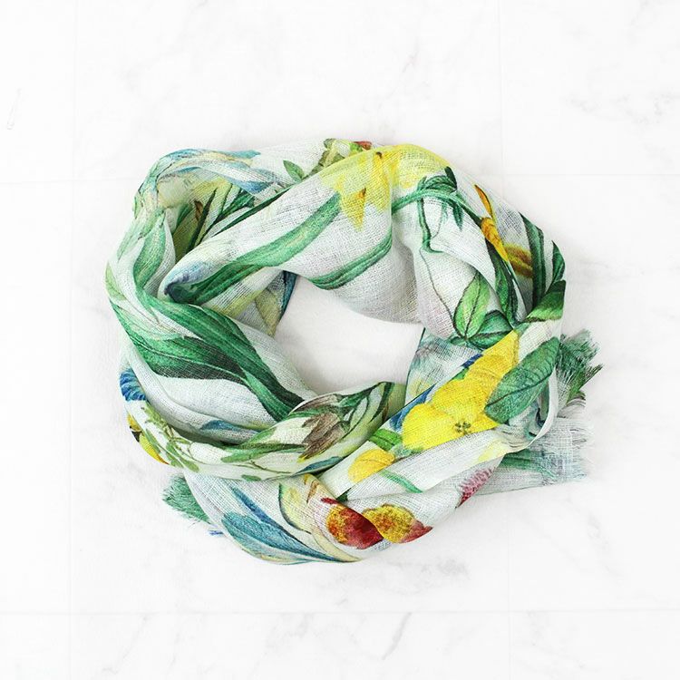 リネン100%ボタニカルモチーフプリントストール/2253011-