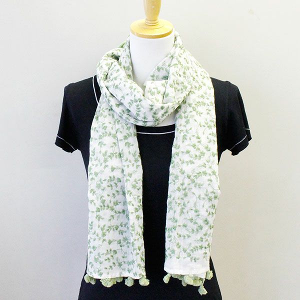 裾のフリンジがワンポイントのコットンストール。