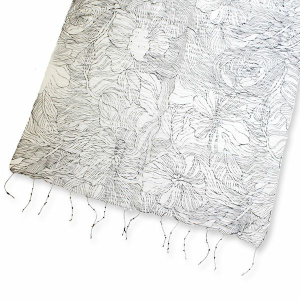 透け感のある素材にプリントした、サラリとして肌触りの柔らかなストールです。首元にかけるだけでワンポイントのおしゃれに♪
