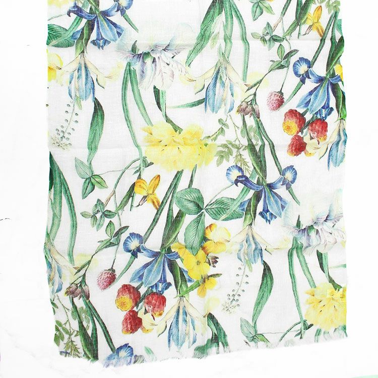 インド製リネン100%ボタニカルフラワープリントストール
