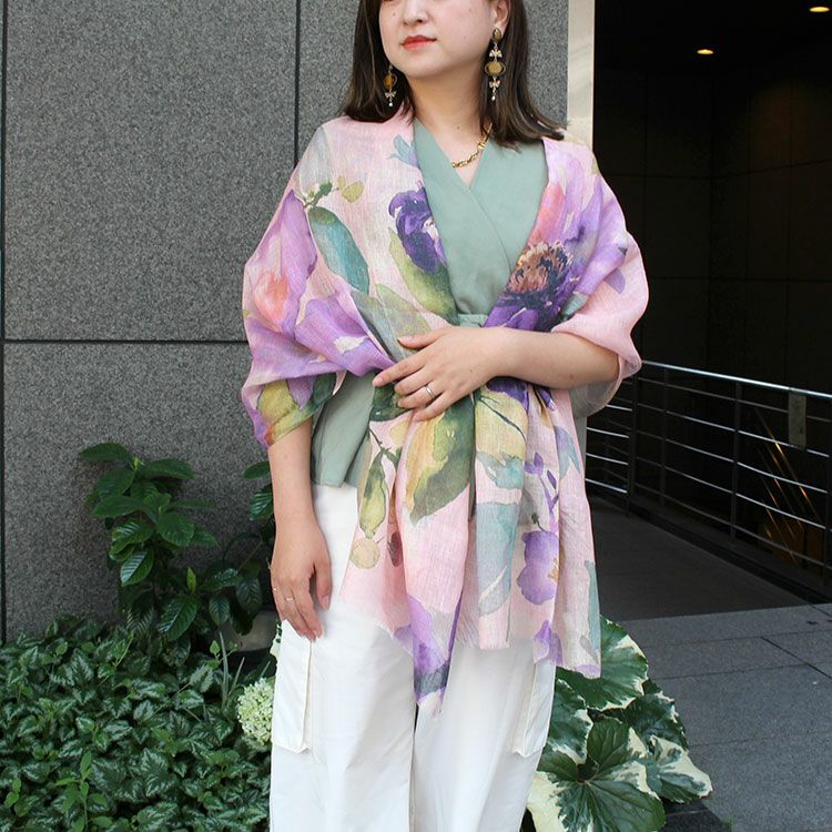 リネン100%ボタニカルモチーフプリントストール/2253011-