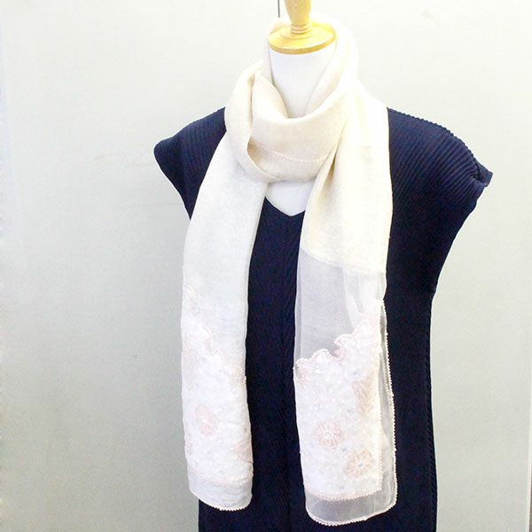 【Liebe】フラワービーズ刺繍シルク混ストール/2156121-