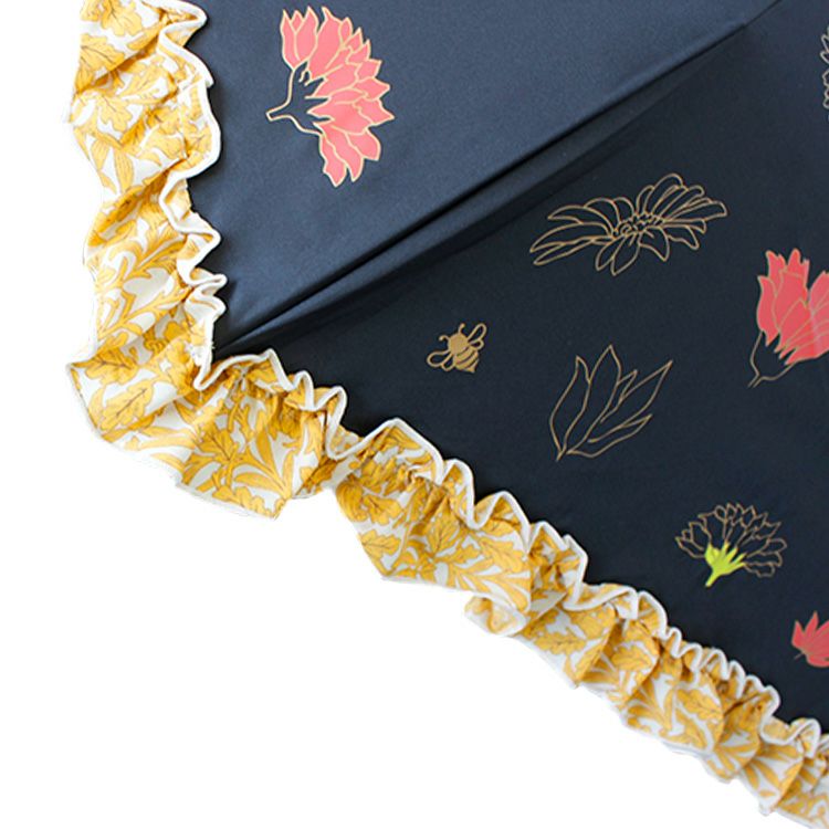 ガーベラの花をイメージして作られたアビステオリジナル晴雨兼用折り畳み傘。ガーベラの周りには、幸運モチーフのてんとう虫やハチがあしらわれています。遊び心のあるユニークなデザイン。遮蔽率にも優れ、雨はもちろん、紫外線からもしっかりと守ってくれます。持ち運びに便利なポーチ付き♪