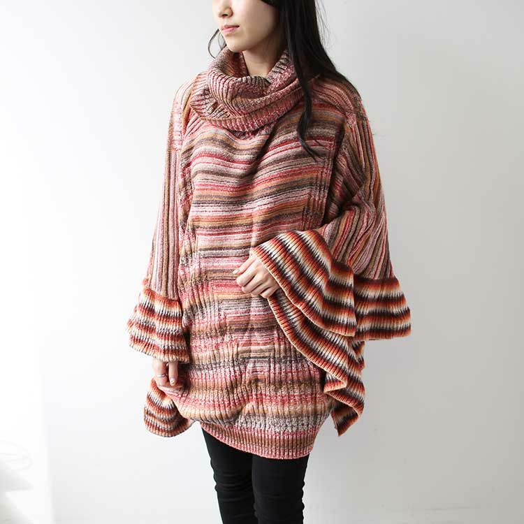 ボーダー柄タートルネックポンチョ/2119546-
