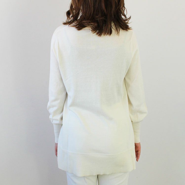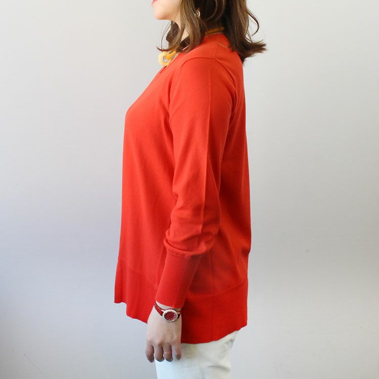 カシミヤ混で肌触りがよいニットプルオーバー。Vネックでお顔周りがスッキリ見えるのと、前身ごろにスリットが入っており窮屈感なく着用できるのが嬉しいポイント。手洗い可能な商品です。