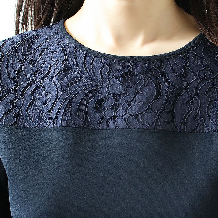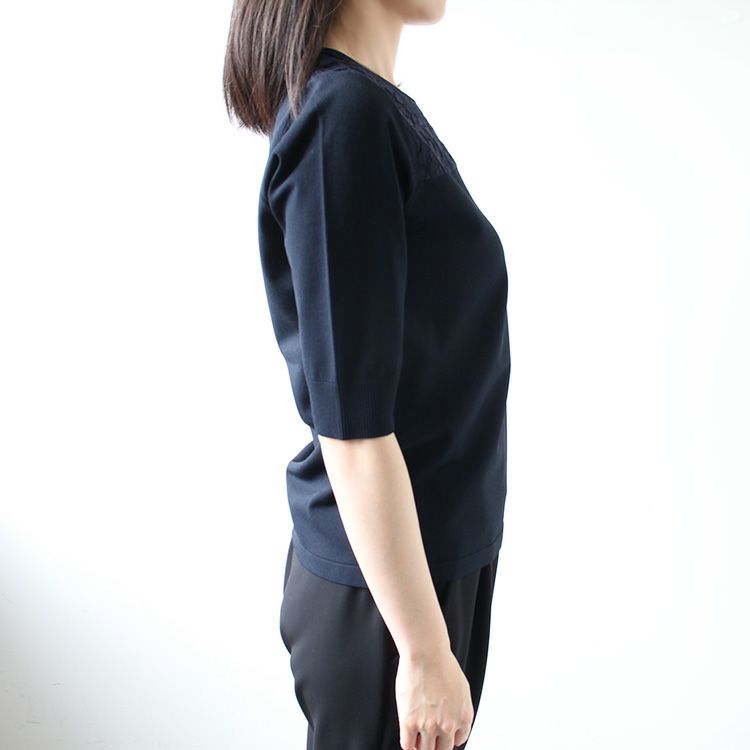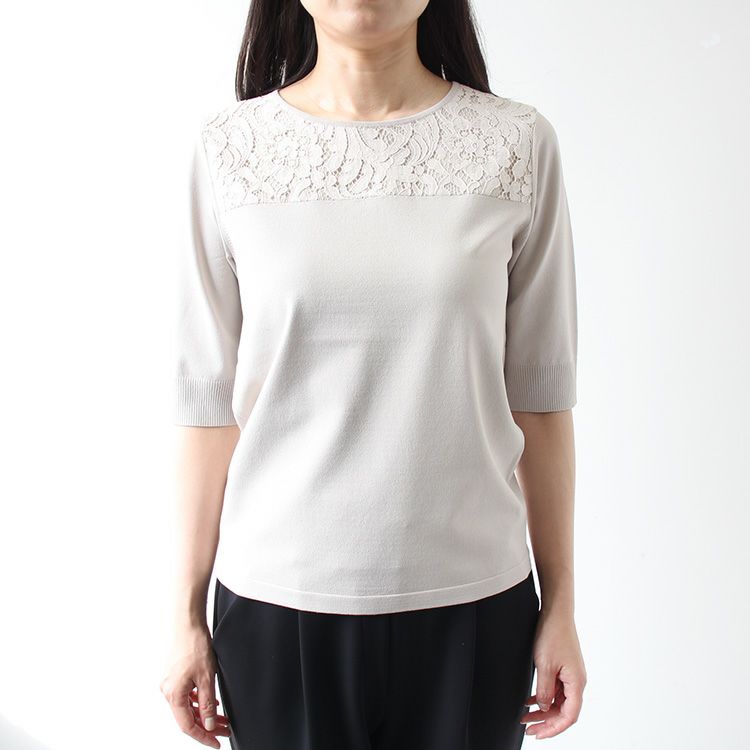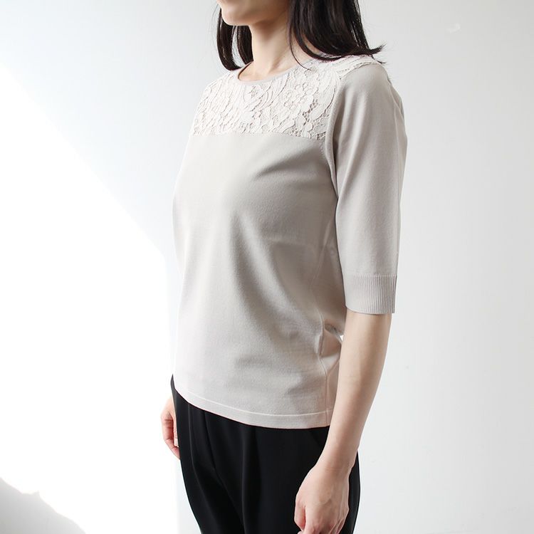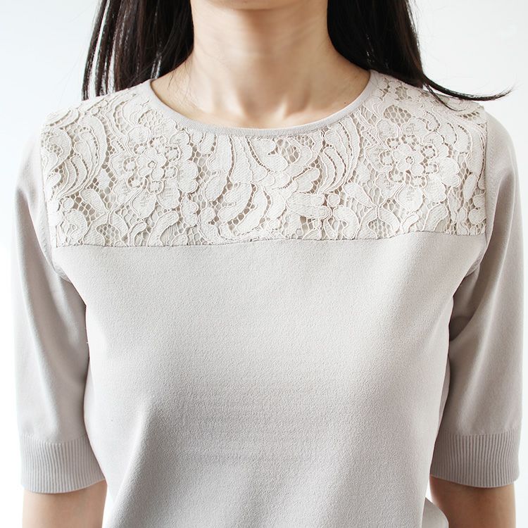 さらりとした質感で幅広いシーズンに活躍しそうなプルオーバー。シンプルなのでどんなアイテムとも合わせやすく、レースが華やかなので、一枚でも地味になりすぎません。