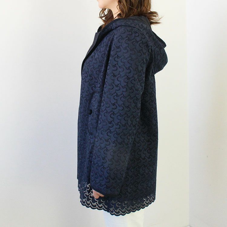 総レースで仕上げた薄手の日本製コート。総裏地付きで風を通さないので、春や秋、季節の変わり目に最適です。身ごろの下の部分はあえて裏地を付けず、レースの美しさが際立つようにデザインされています。