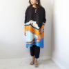 ペイズリーのプリント生地に細いプリーツ加工を施したワンピース。