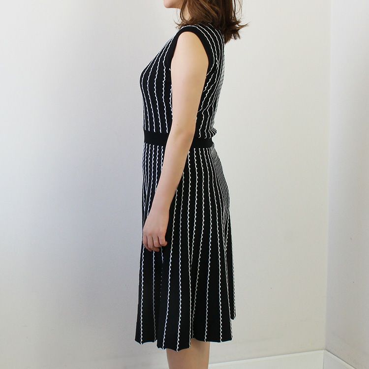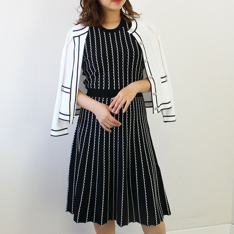凹凸のある編み地、フィットアンドフレアーのシルエットが立体感のあるニットワンピース。程よい厚みのある生地なので、薄手のシアータートルネックをインしたり、カーディガンやジャケットを羽織ったりと幅広いコーディネートで長い期間お使いいただけます。