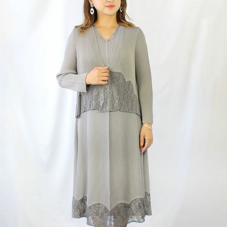 裾レースフレンチスリーブプリーツワンピース(アンサンブル可能)