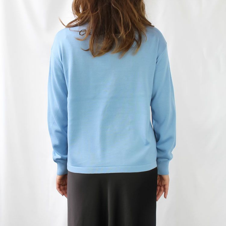 セーターのチクチクが苦手な方にもご着用いただきやすい、なめらかで肌触りの良いニット。品の良さと落ち着き、柔らかい印象を持つサックスブルーのプルオーバーです。春先、秋には一枚で、冬は暖かい機能性インナーに重ねたりアウターで調節してロングシーズン着用可能。