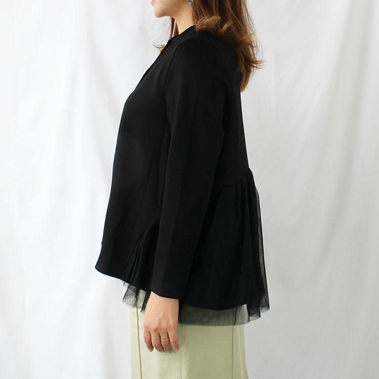 なめらかな生地をバックチュールで飾ったシンプルながらも華やぎのあるトップス。アクセントのパールボタンが上品さをプラス。裾にかけて広がるデザインなので、華やかさと体型カバーを両立してくれます。透け感はないので一枚で着用可能。春秋には一枚で、秋の深まりから冬にかけてはインナーやアウターで調節しながら、長く着られます。