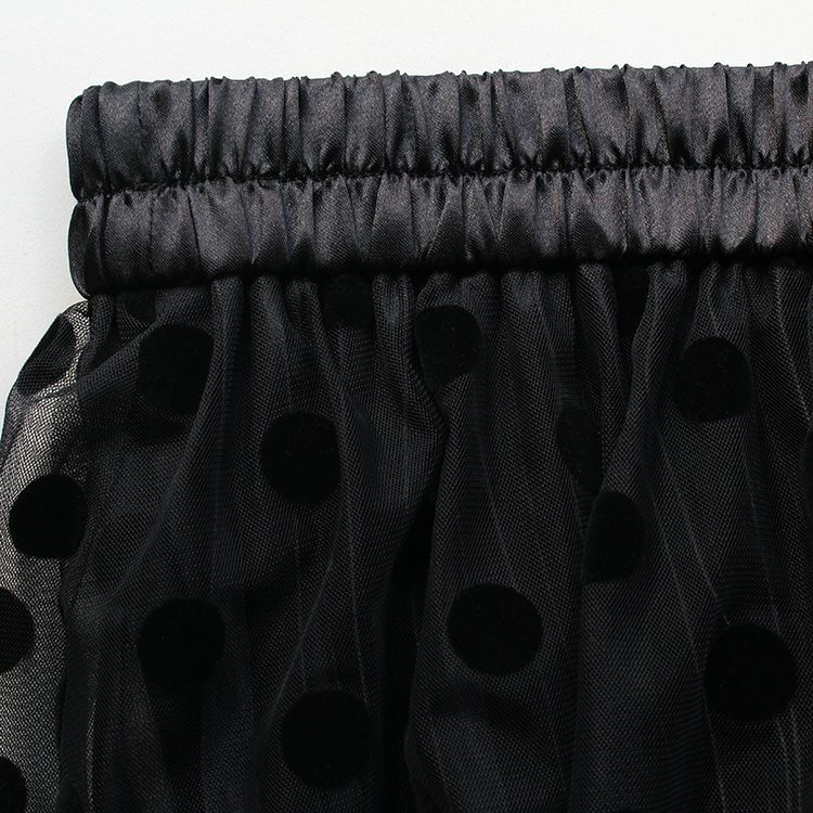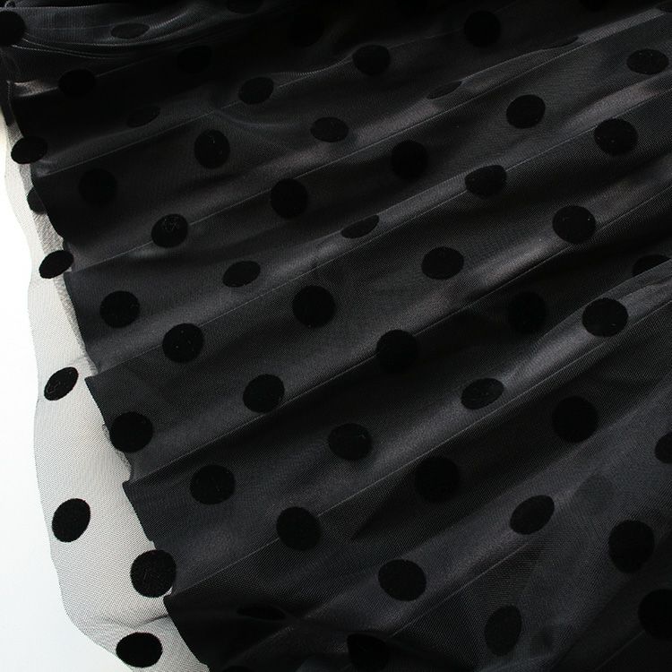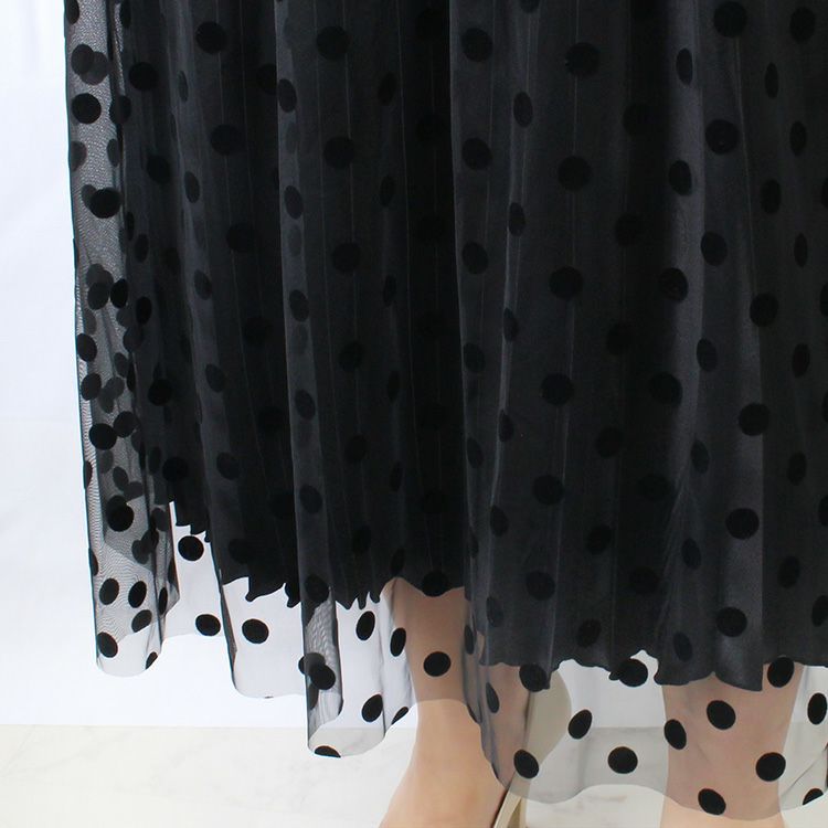 プリーツ×オーガンジー重ねフロッキードットスカート