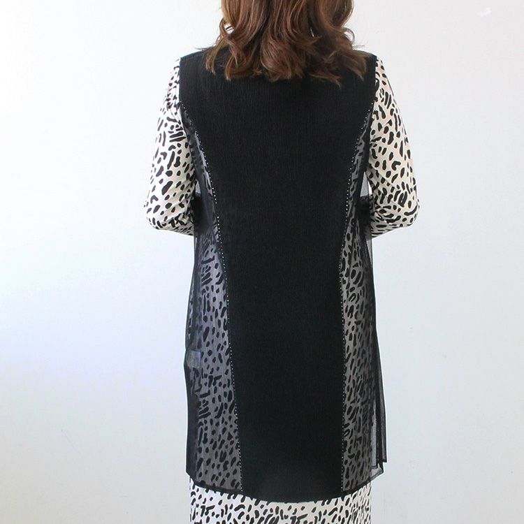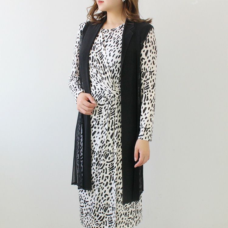 メッシュ切り替えプリーツロングジレ/2214048-