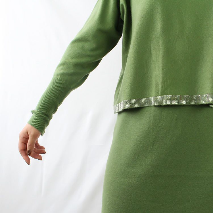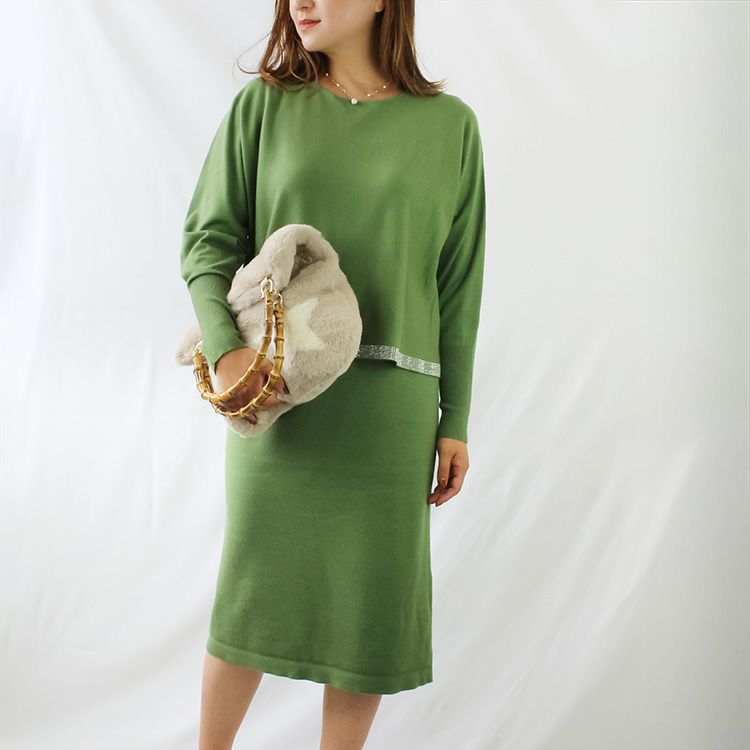 チクチクしない滑らかな肌触りのハイゲージニットワンピース。ニットワンピースながらも落ち感があり体にフィットしすぎないデザイン。セットアップのように見えるので、これ一枚でコーディネートが完成します。