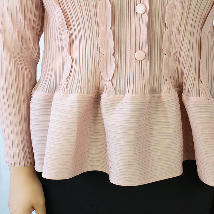 フロントボタンペプラムプリーツプルオーバー